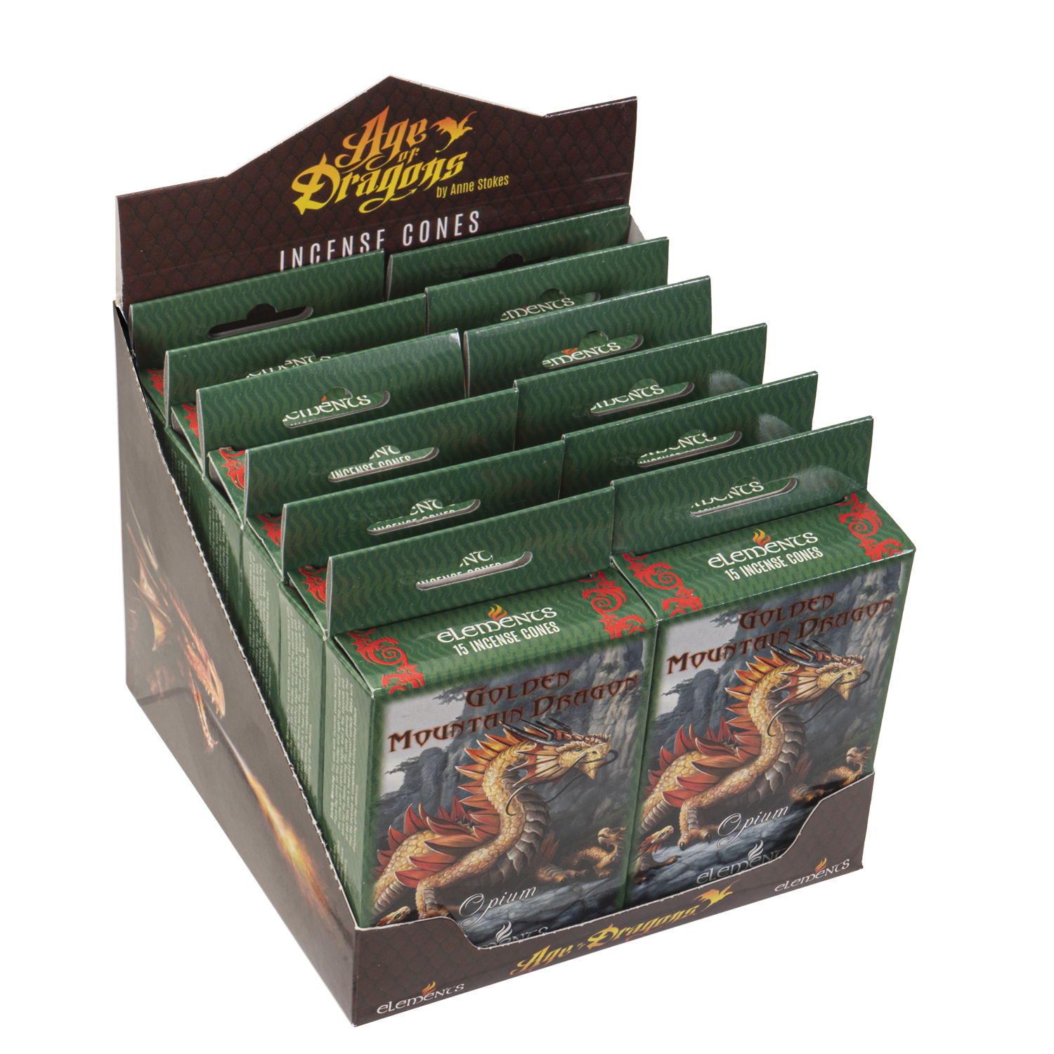 A display box of 12 packs of fragrance incense cones. Each pack contains 15 incense cones.