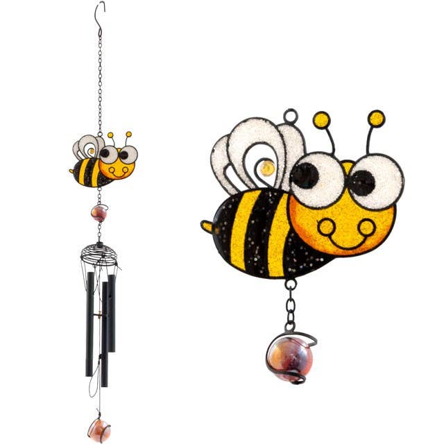 A beautiful hand crafted metal, glass & resin windchime in a Bee design.- UK Exclusive design to Something Different Wholesale. - Ethically sourced.- Suitable for indoor and outdoor display. - No minimum order.
