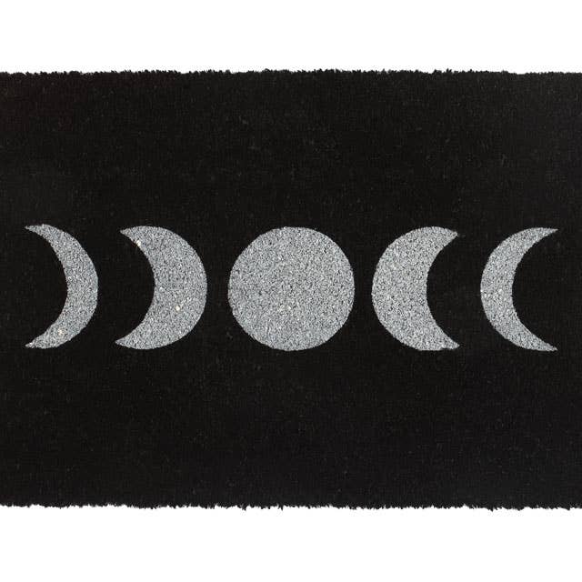This black doomat features a simple moon phase design that will add a mystical touch to any doorstep. Due to the high concentration of dye used to obtain this colour do not place onto pale surfaces (especially leather) as this may result in dye transfer. Design may fade in extreme weather. Suggested for sheltered and indoor use only. Designed by Something Different Wholesale for the Black Magic range of gothic gifts and home decor.