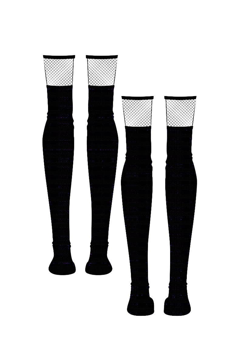 Finally stockings that won't roll down! We topped these gothic thigh-highs with fishnet & elastic-banded garters with a super strong hold so your socks won't roll down!