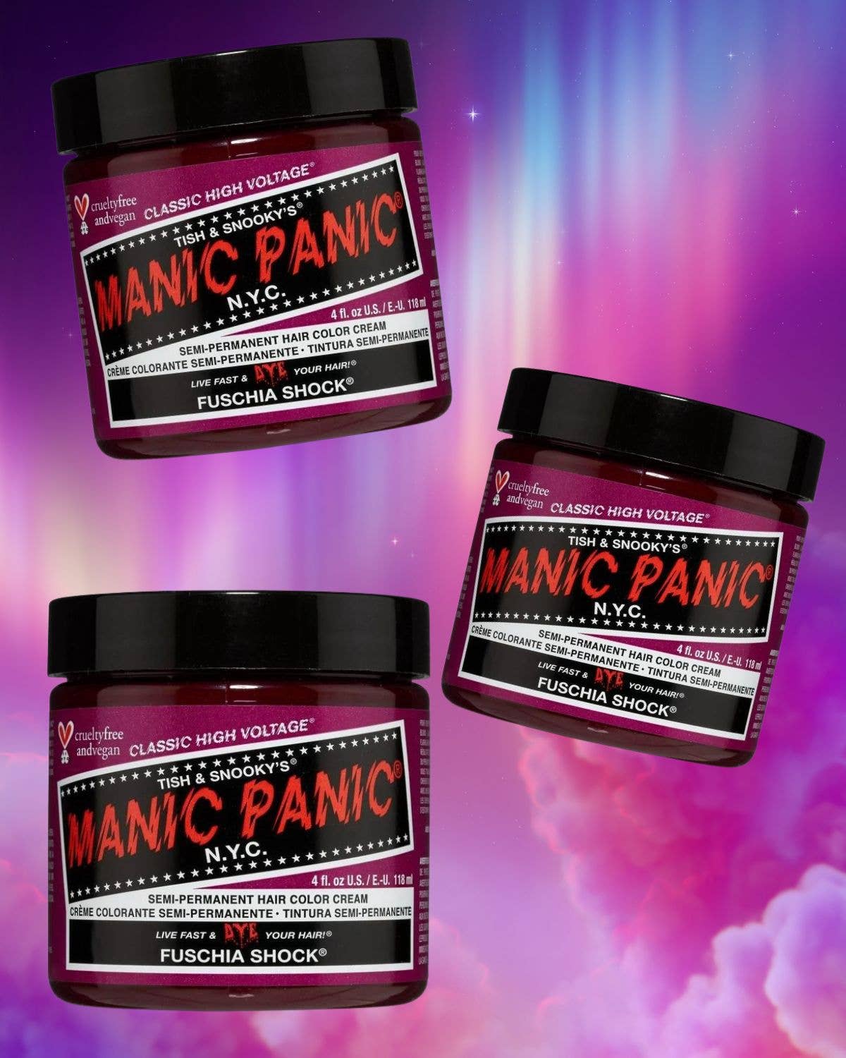 Fuschia Shock is a deep, cool fuchsia hair dye. Our darkest pink, this shade can create fuchsia tones on virgin, unbleached hair. For best results, however, we recommend lightening hair to light, level 8 blonde or lighter.