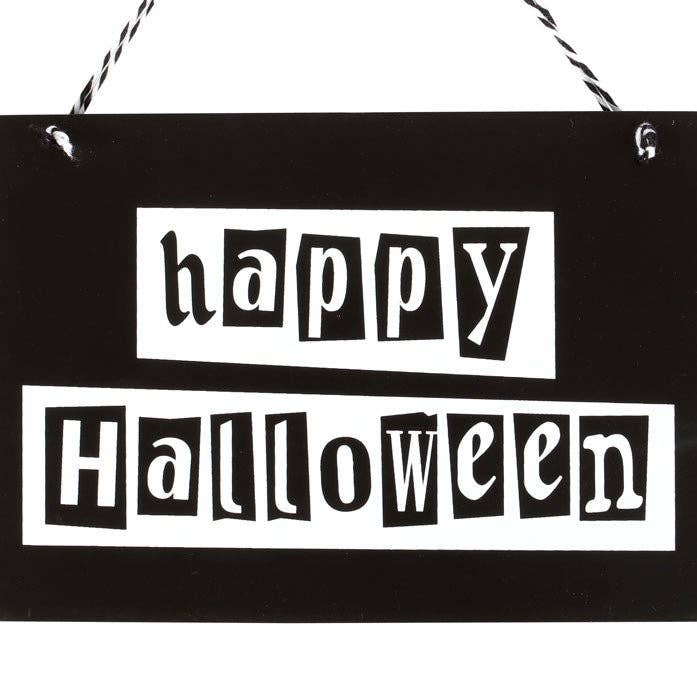 This hanging sign with a 'Happy Halloween' print offers a perculiar style that's sure to give the home an eerie edge. Designed in a black and white colourway for maximum impact. Designed by Something Different and part of our Strange and Unusual collection of home decor and accessories.