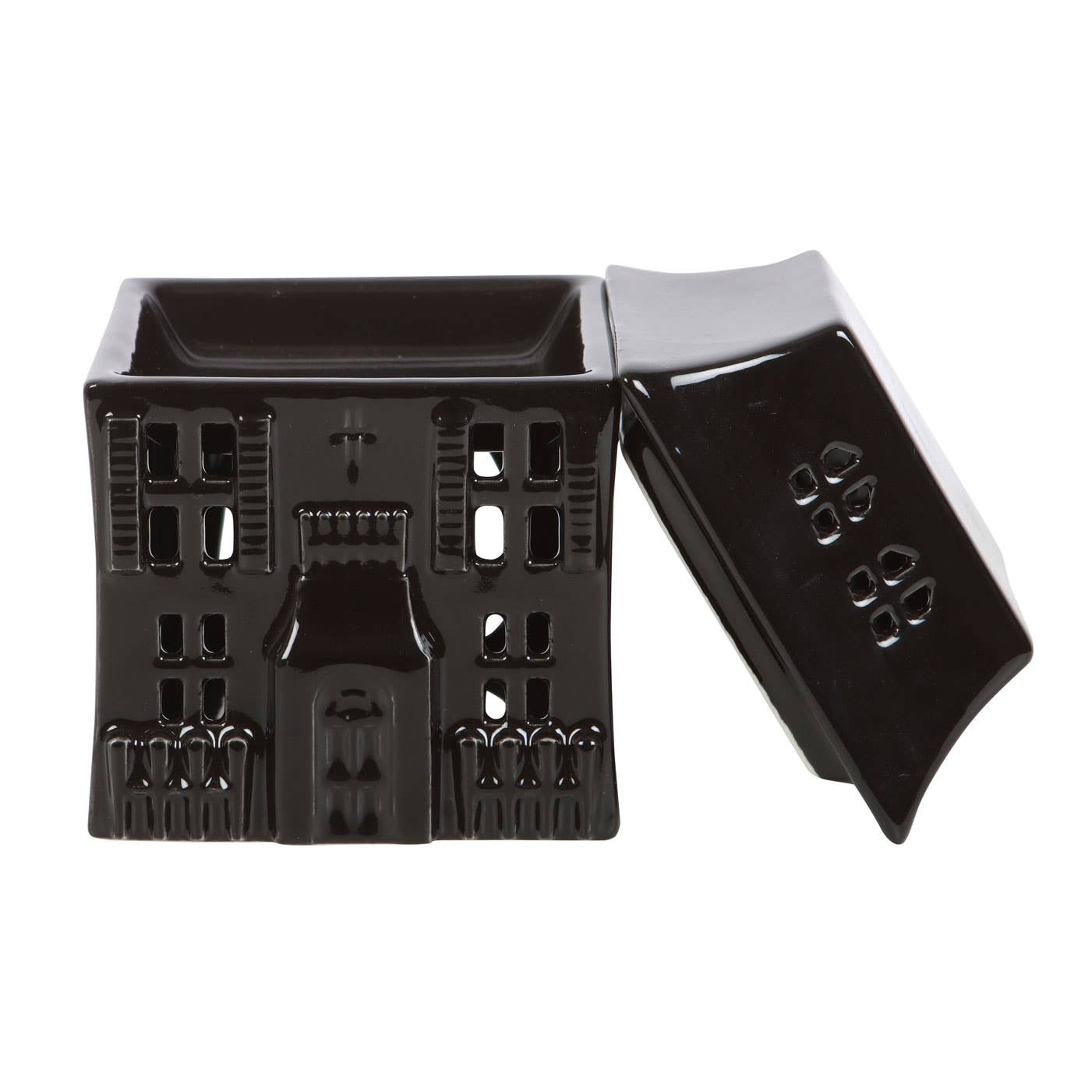 Embrace the 'spirit' of Halloween year-round with this spookily stylish haunted house oil burner. When a lit tealight is placed inside, the flickering flame casts eerie shadows, creating a bewitching atmosphere. A great piece for those who appreciate unconventional style and gothic decor. Recommended for use with fragrance oil diluted with water. Do not use more than one tealight and remove lid when in use. Designed by Something Different and part of our exclusive collection of unique oil burners.