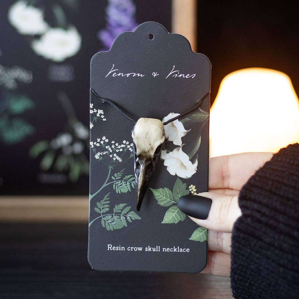 Channel your inner mystery with this striking resin crow skull necklace, suspended on a durable PU cord. Perfect for adding a touch of gothic flair to any outfit, it’s a distinctive accessory for lovers of unique jewellery. Skull is artificial and made of resin. Designed by Something Different Wholesale and part of the Venom and Vines collection of gothic home decor and accessories.