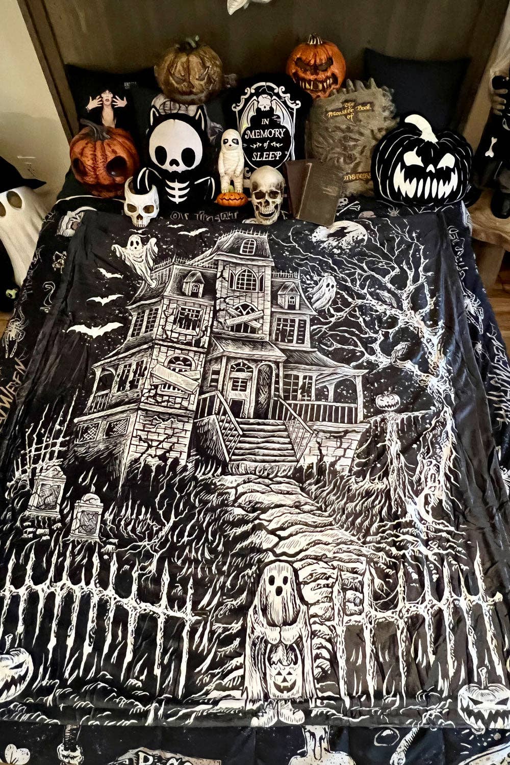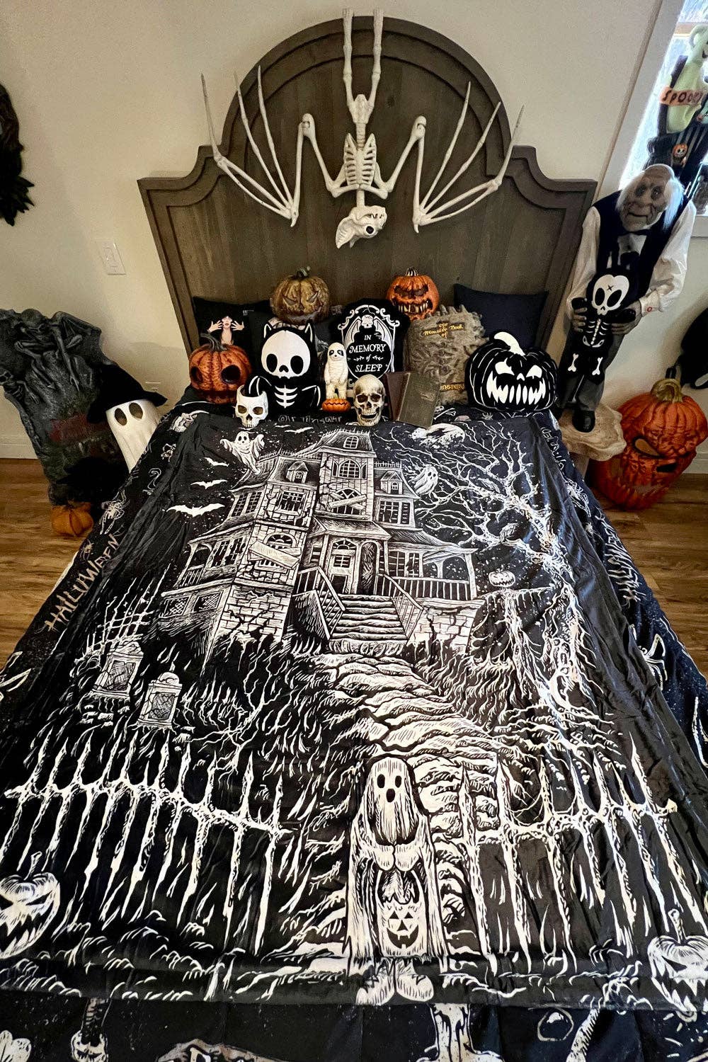 When witches go riding, and wood creaks undaunted, ghosts chant in whisper, "This house is haunted."