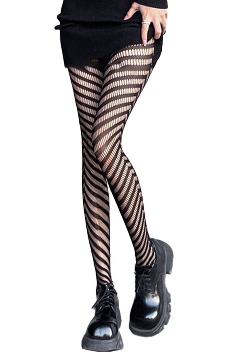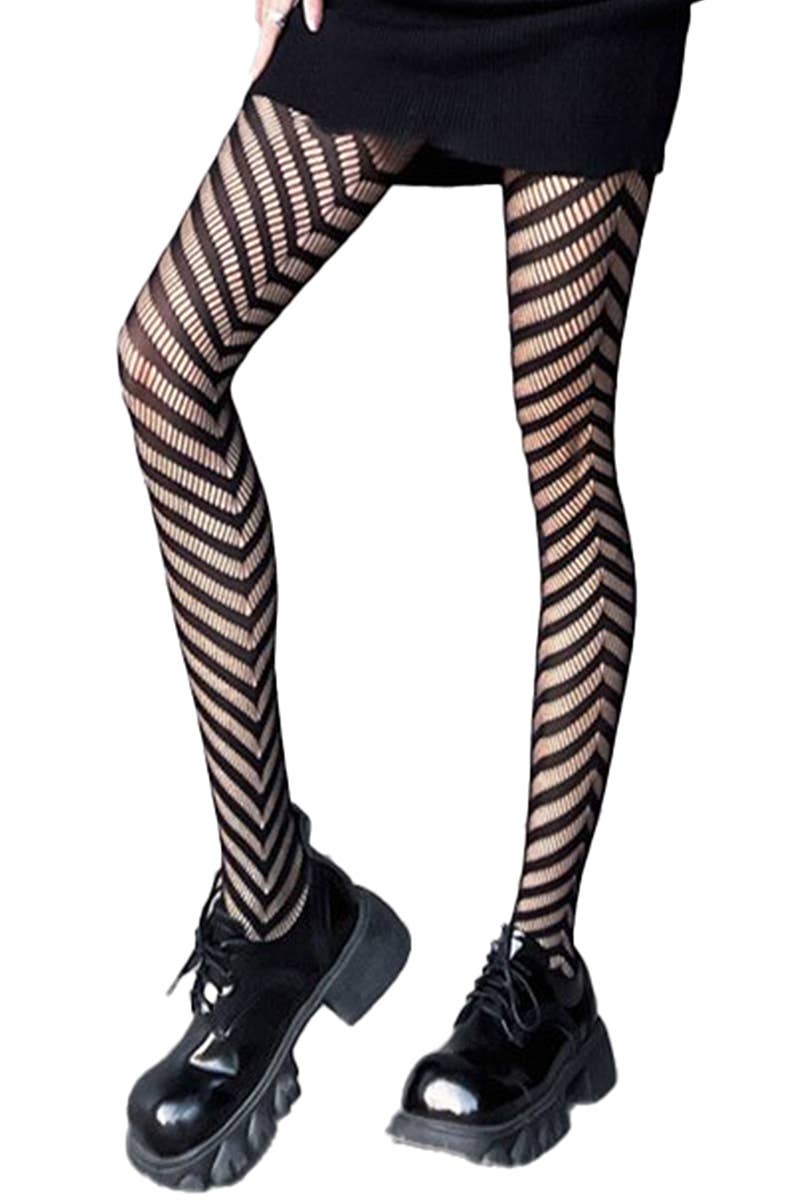 High Rise Diagonal Stripe Chevon Net Sheer Tight Pantyhose