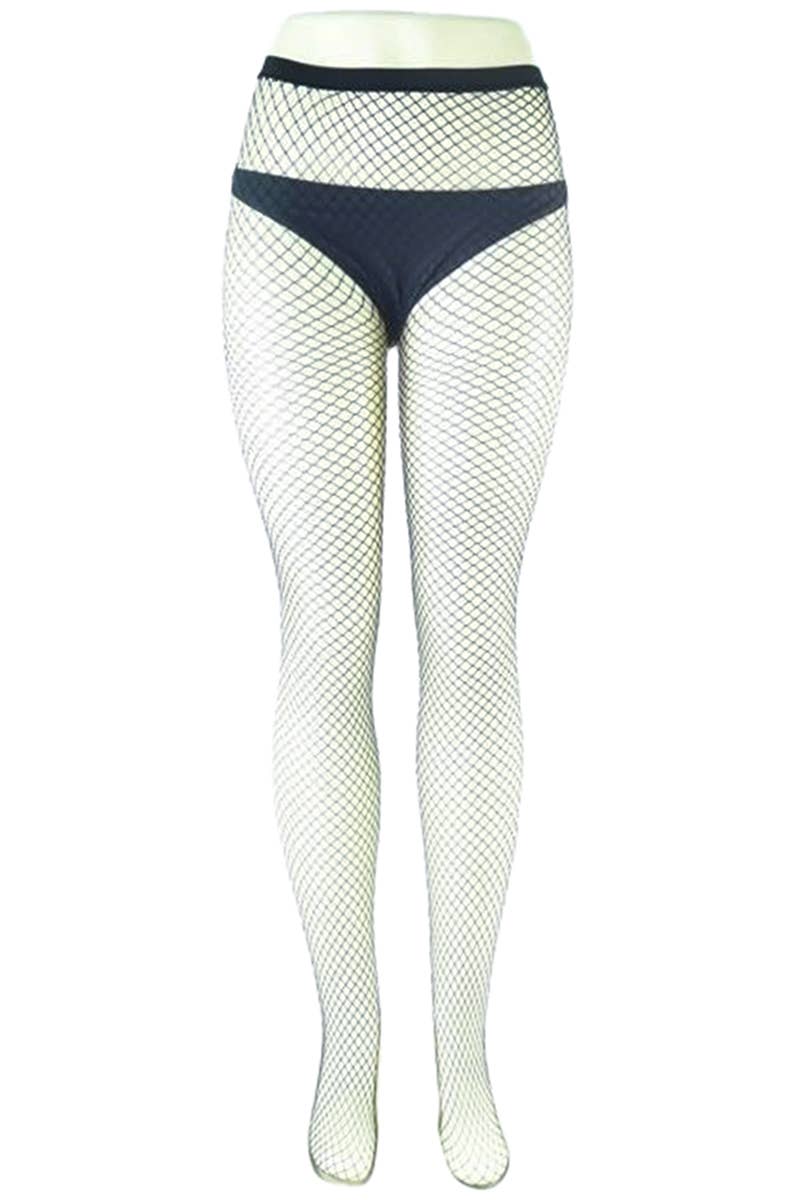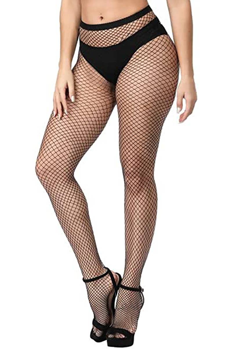 Women's High Rise French Cut Diamond Fishnet Sheer Tight Pantyhose