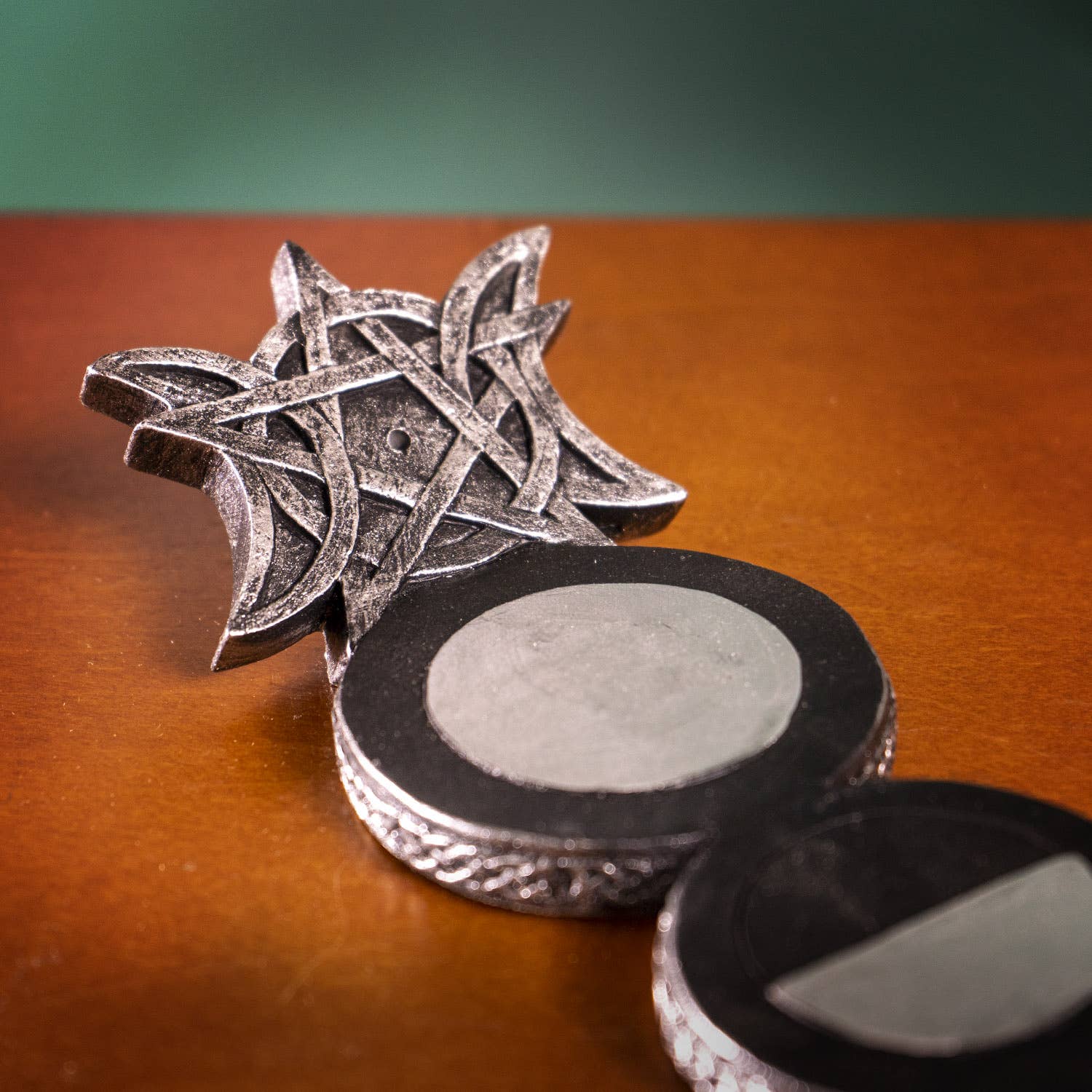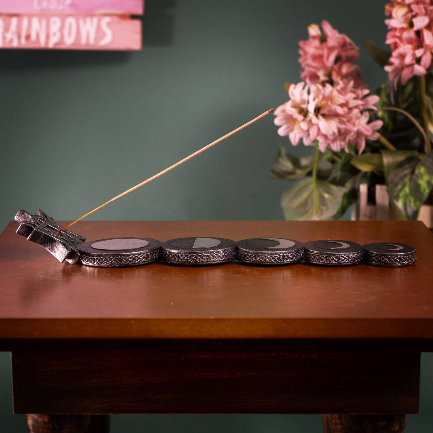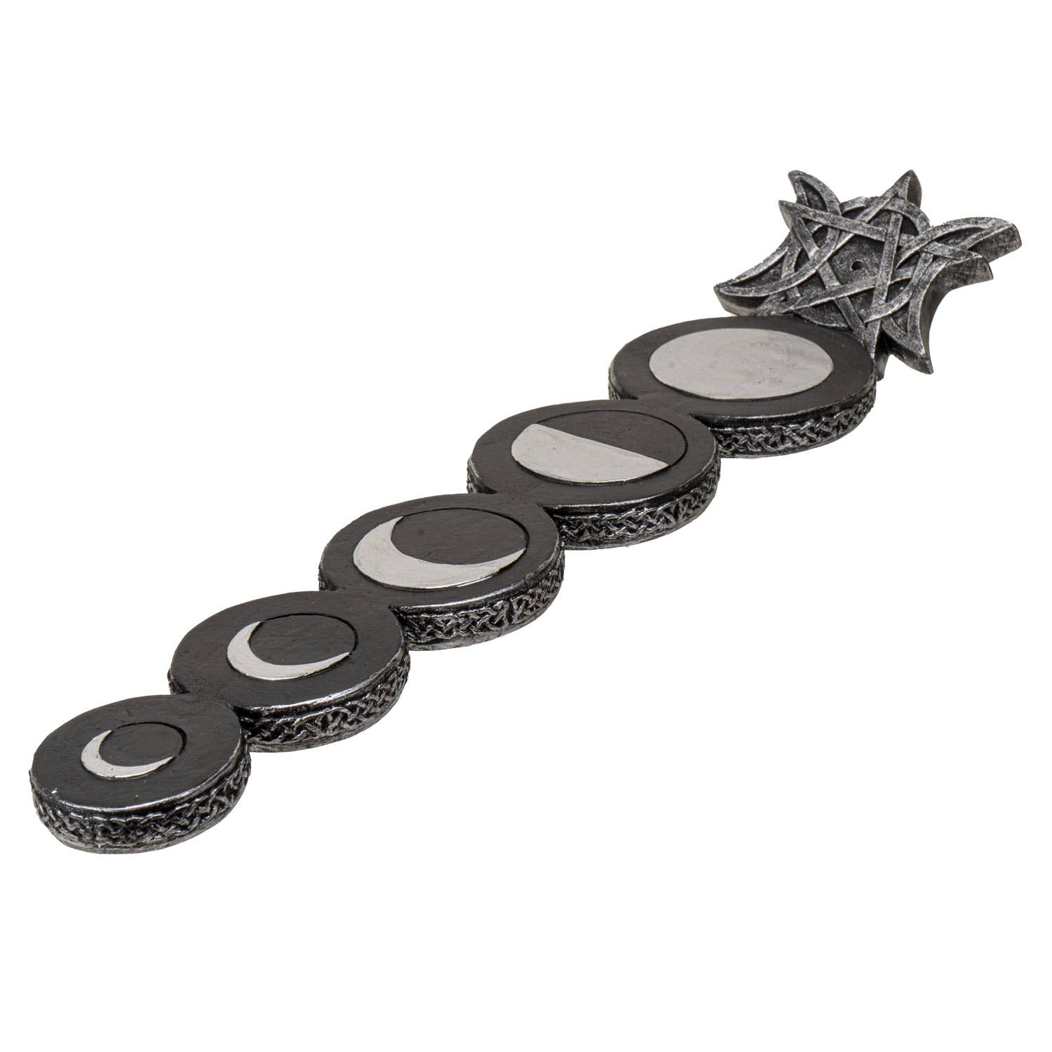 Mystic Moon Incense Burner Product Size: 11.33" X 2.55" X 1.45" Material: Cold Cast Resin