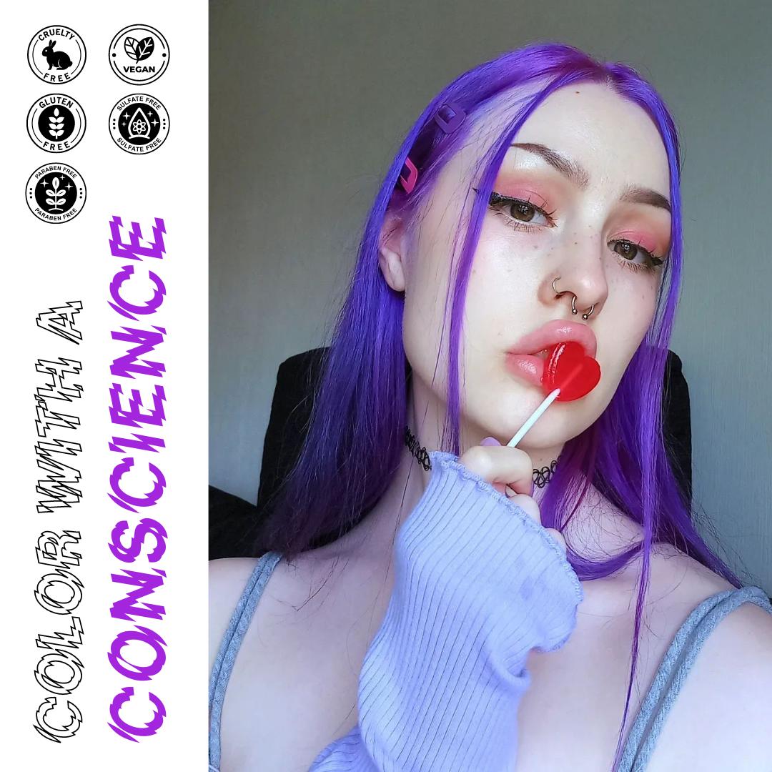 Ultra Violet is a super cool, blue-toned violet hair dye that can even give unbleached hair violet tones. For the most vibrant results, we recommend lightening hair to very light level 9 blonde or lighter before use.
