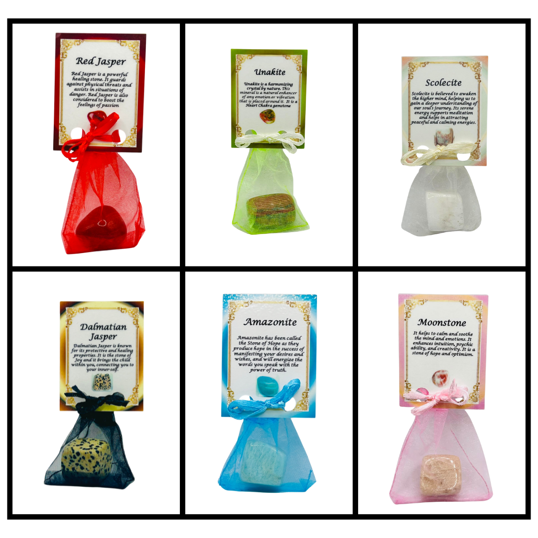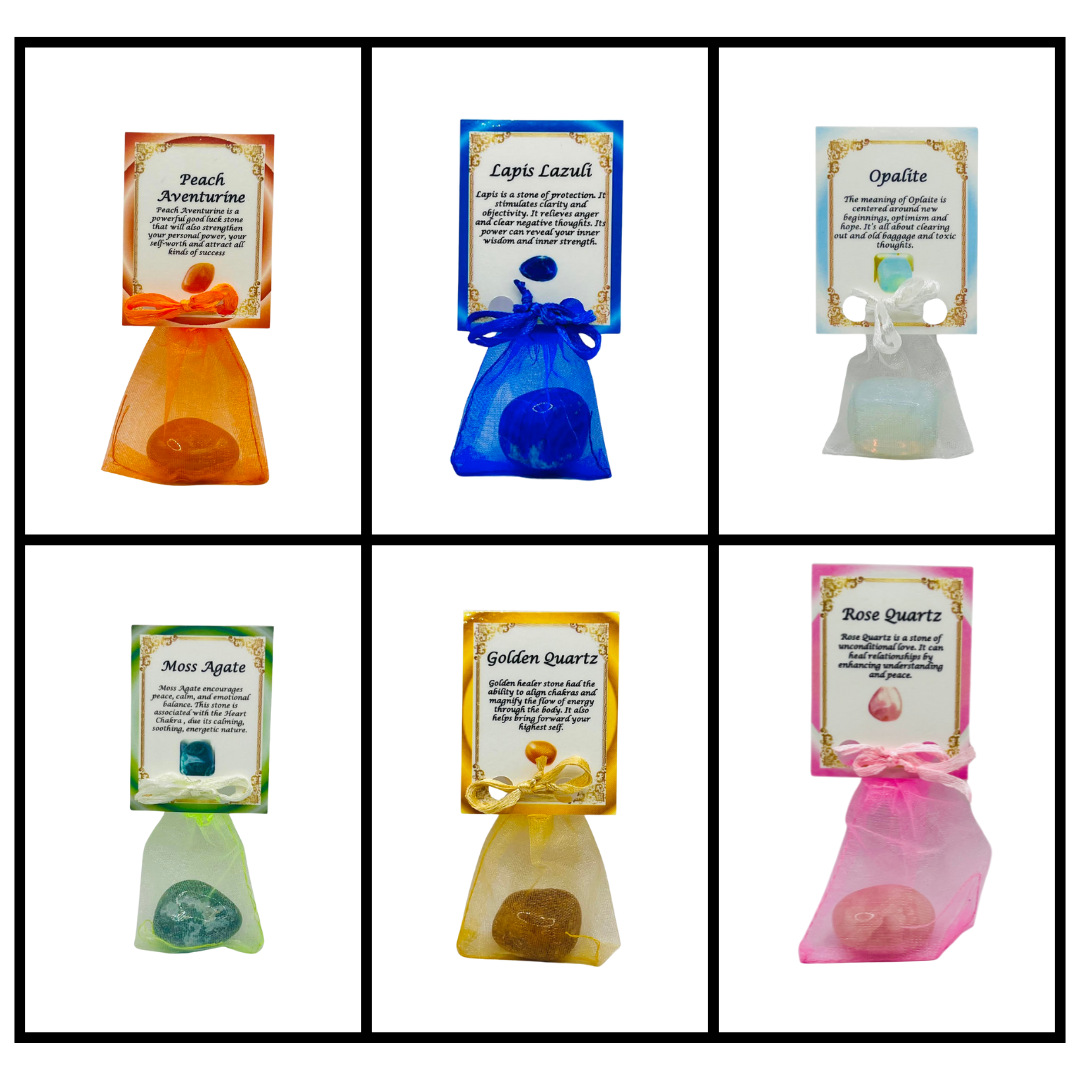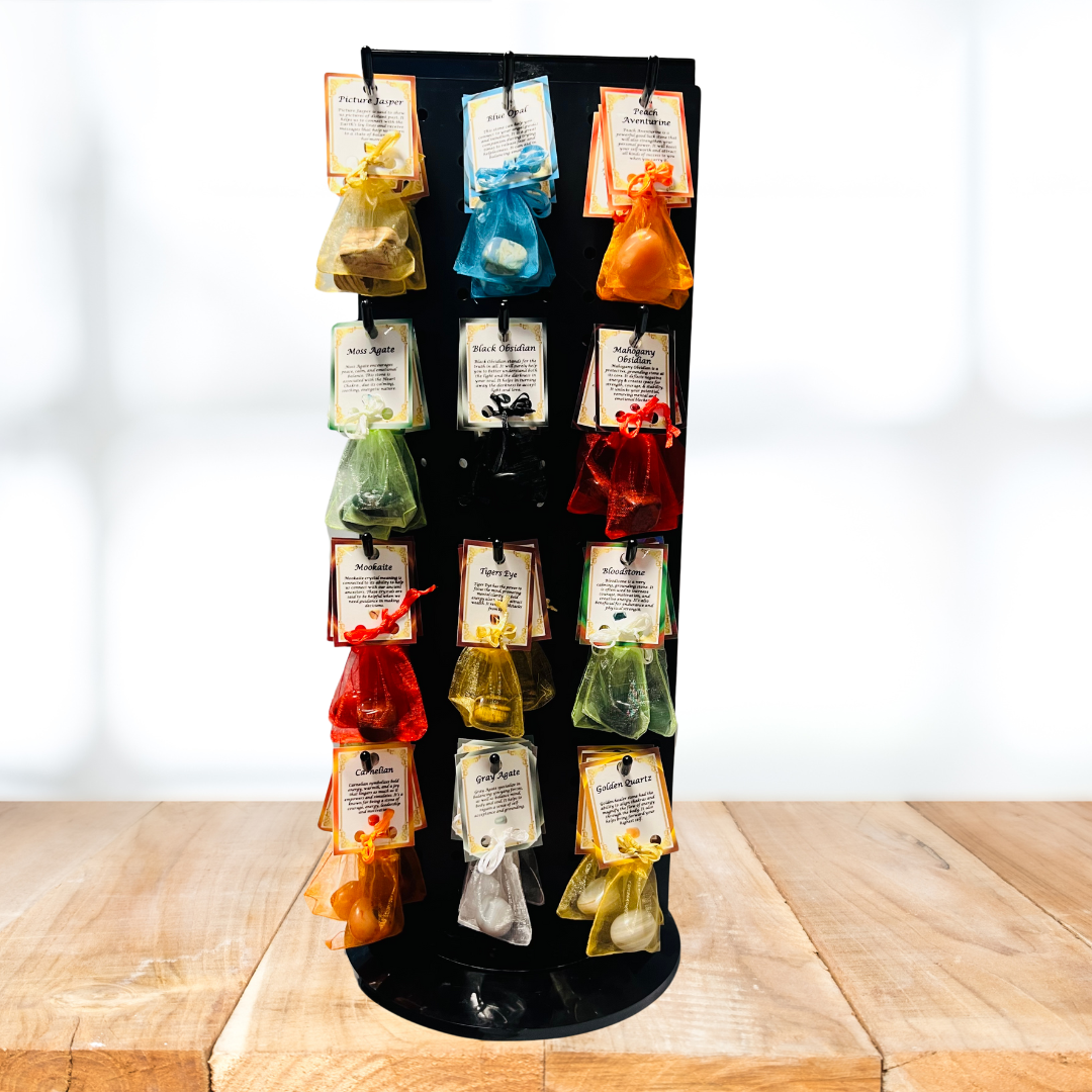 Discover the beauty and metaphysical benefits of our pocket crystal tumbled stone display, featuring a curated selection of premium crystals perfect for carrying with you on the go. This display includes a selection of tumbled stones such as amethyst, rose quartz, clear quartz, and more, each chosen for its unique properties and beauty. These pocket-sized crystals are ideal for carrying in your pocket, purse, or bag, allowing you to access their energies anytime, anywhere. Each crystal is believed to offer specific healing and balancing benefits, such as calming (amethyst), love and compassion (rose quartz), and clarity (clear quartz).