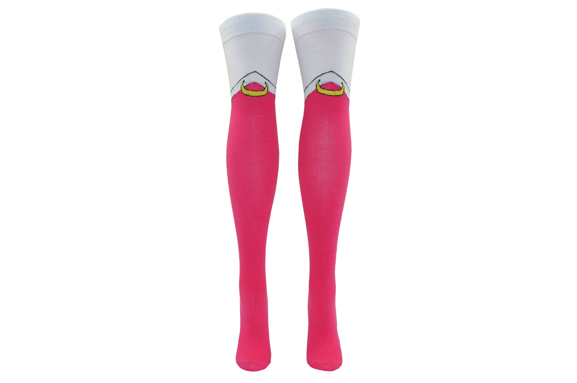 Sailor Moon's outfit is awesome and iconic from head to toe. Comfortably sport her famous boots in these officially licensed Sailor Moon over the knee socks. You'll love fighting for love and justice without the discomfort and price of real boots.