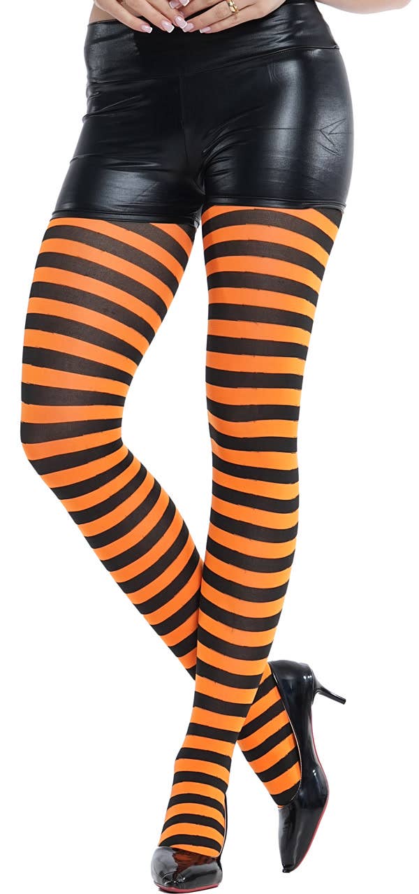 Wicked Orange and Black Striped Stockings — One Size Fits